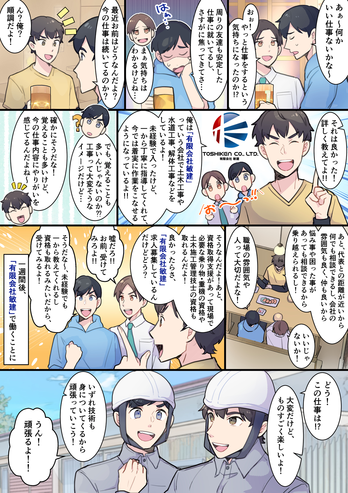 建築土台の造成や配水管の工事、道路改良、宅地造成、盛土、解体工事、外構工事など、個々の現場により内容は異なりますが、土木工事が主体となります。自分の仕事が人々の生活を支えていき、社会の一部になっていくことは、大きなやりがいになります。また、敏建では社員が仕事に専念できるように、働きやすい環境整備に力をいれております。保険はもちろんのこと福利厚生面も含めて安心、安全に働く事が出来ます。即戦力として活躍いただける経験者はもちろん、未経験の方のご応募も大歓迎です。